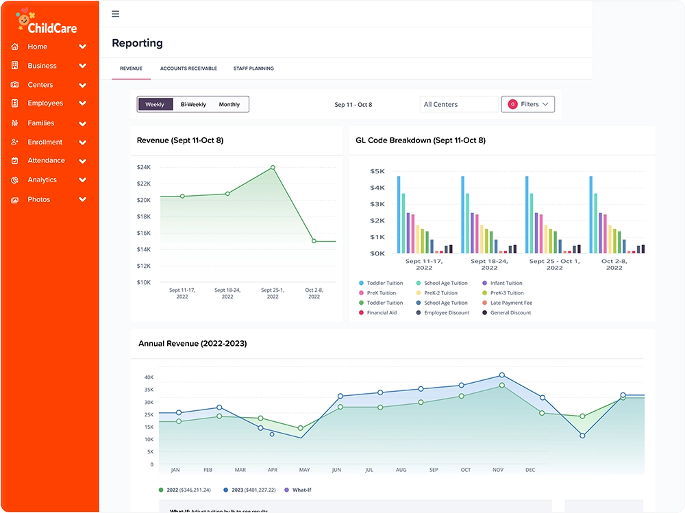 Business by Childcare automates registration and enrollment, lead management, billing, staff scheduling, and more so you can focus on what really matters—growing your business and supporting your staff and families.